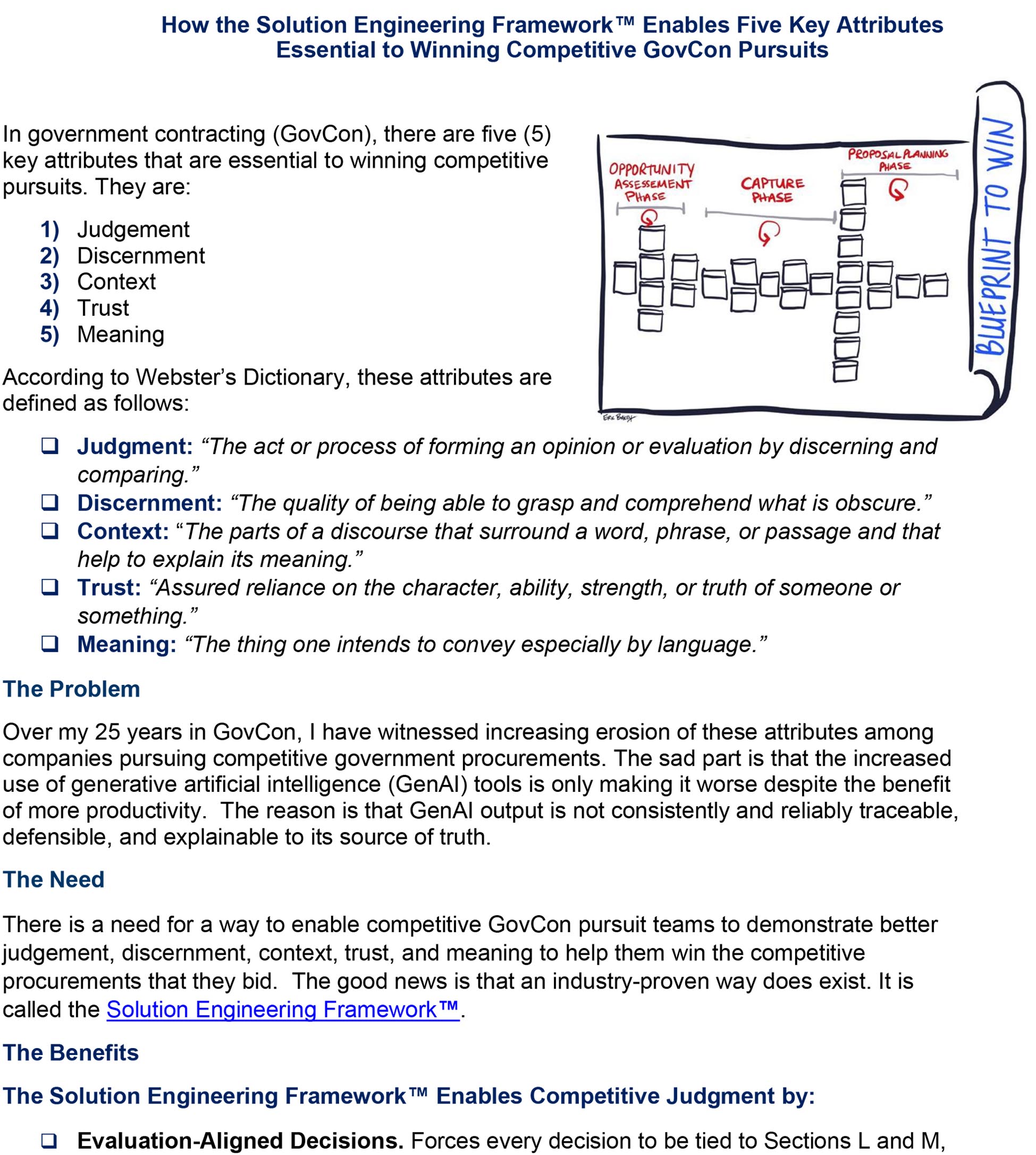 - How the Solution Engineering Framework™ Enables Five Key Attributes Essential to Winning Competitive GovCon Pursuits